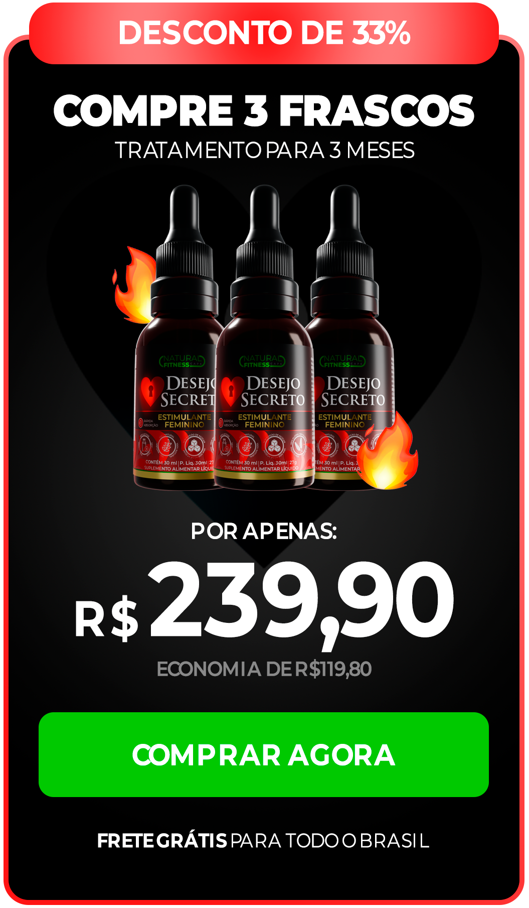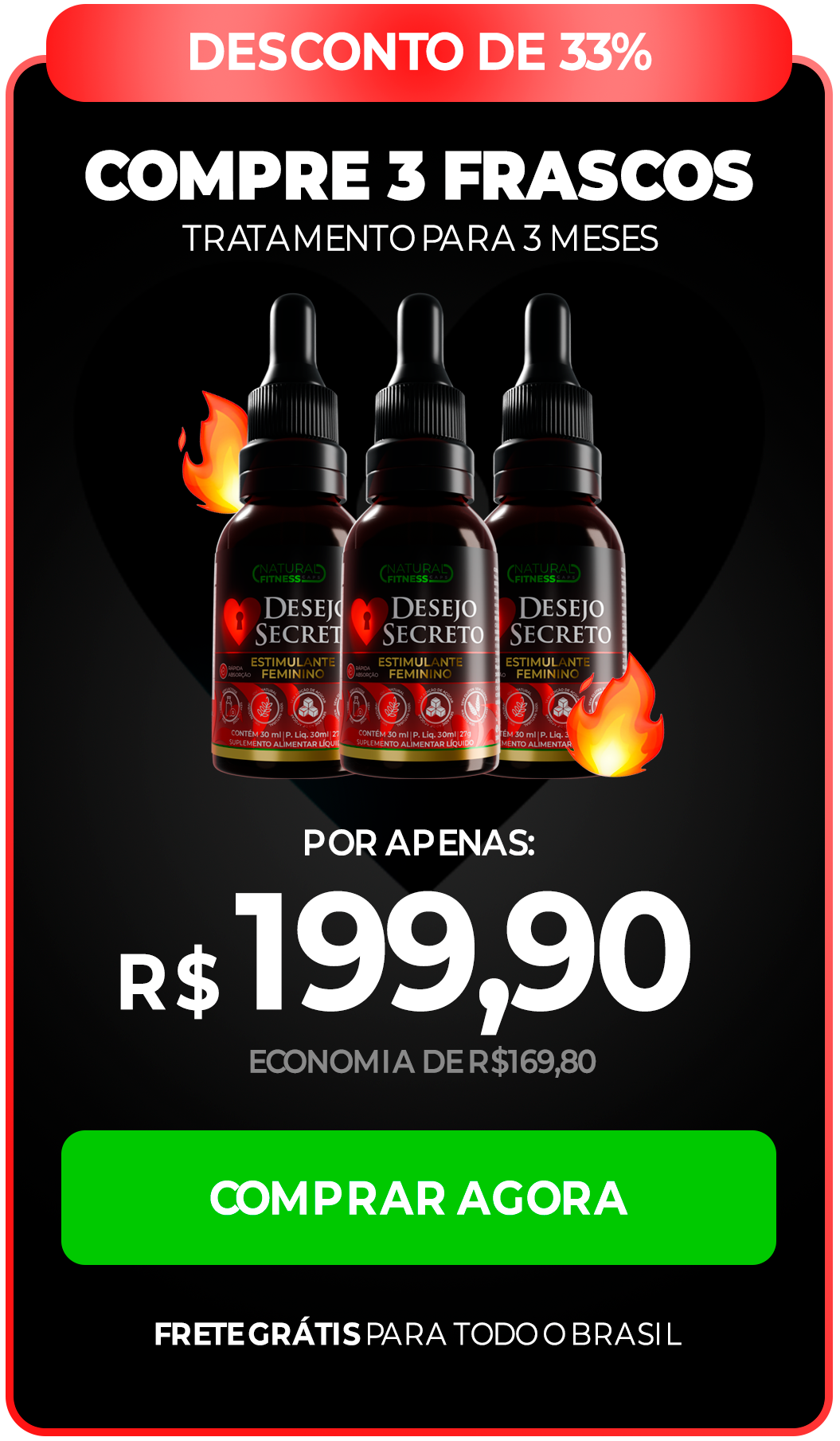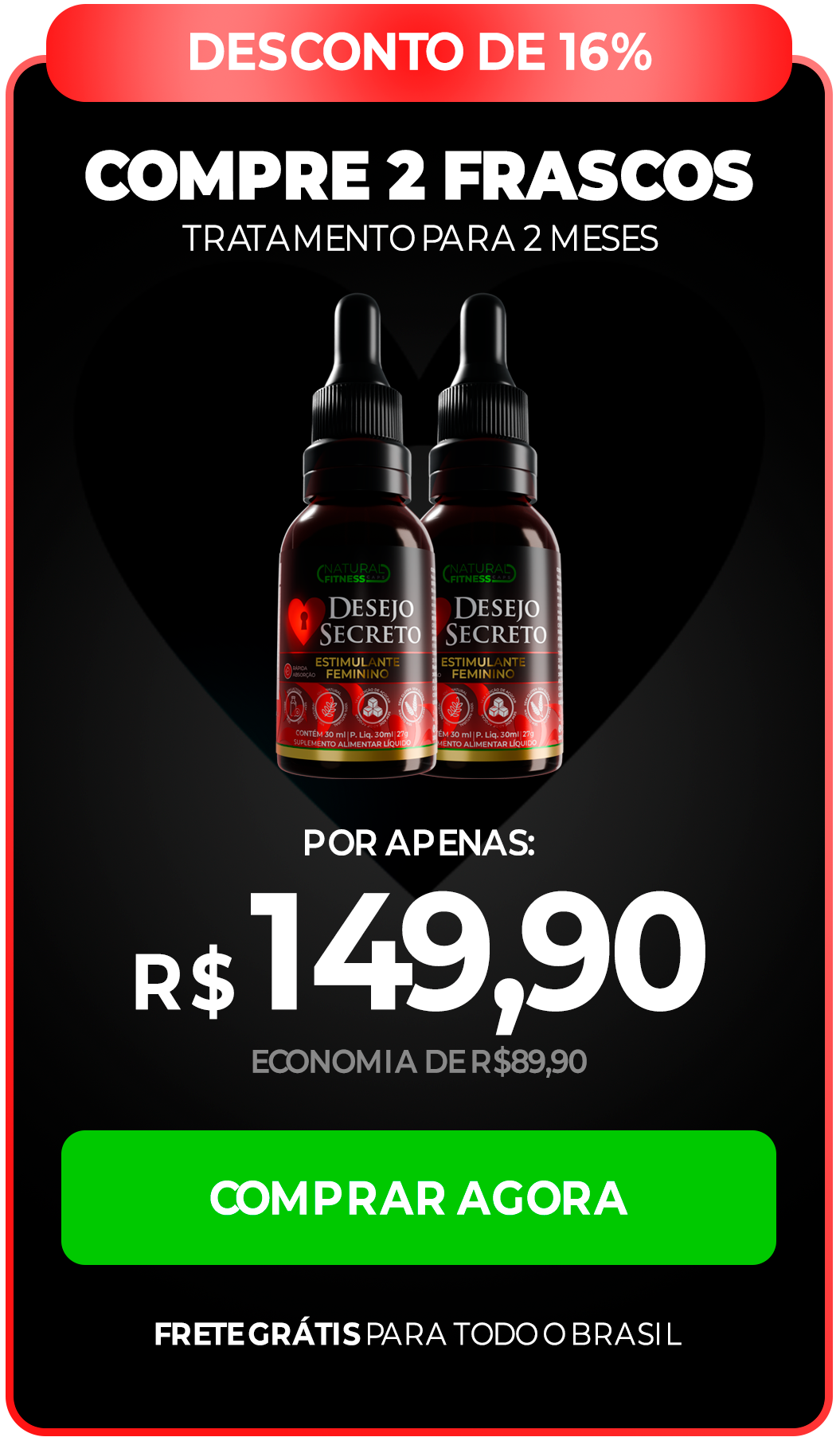 Os ingredientes presentes na composição do Desejo Secreto são regulamentados e aprovados pela ANVISA para consumo.