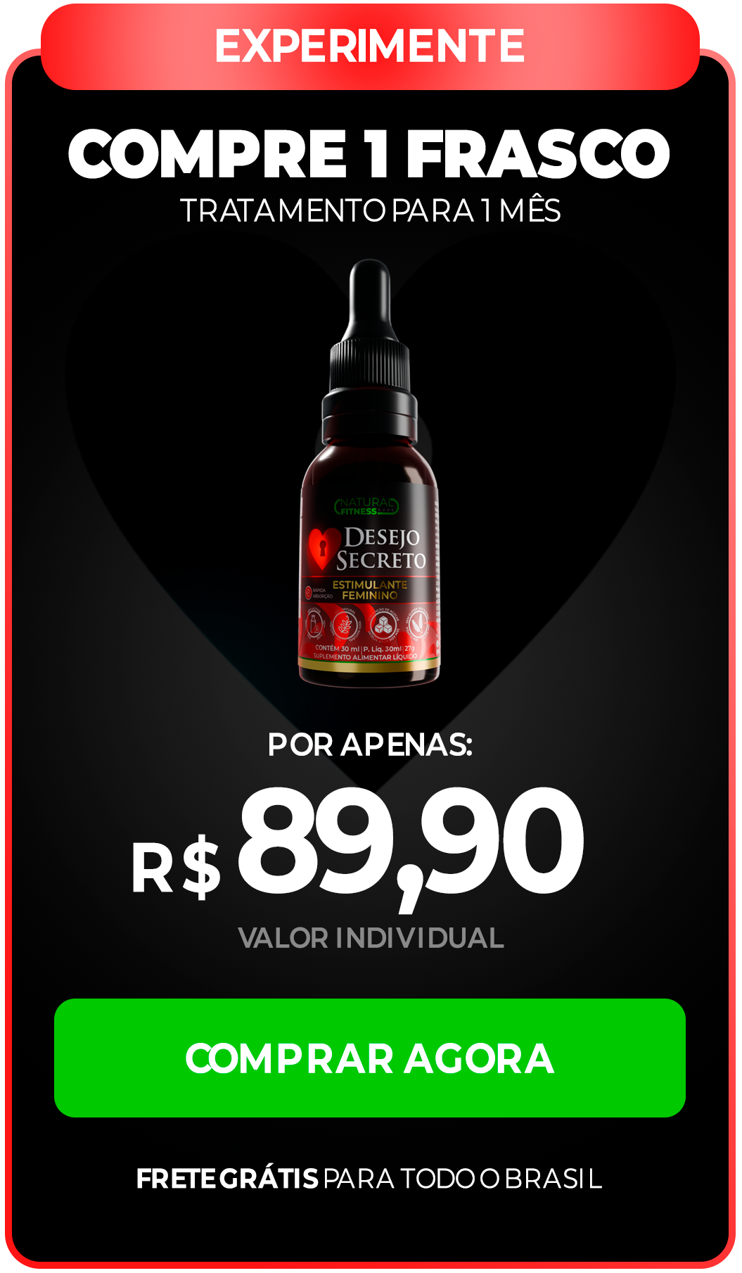 Desejo Secreto possui fórmula natural e não costuma causar efeitos colaterais.